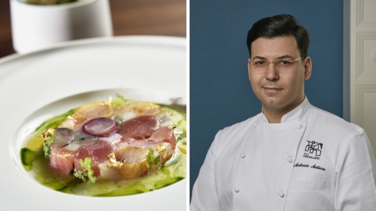 In cucina, l’energia creativa è nelle mani del Resident Chef Antonio Autiero. Lo Chef Autiero ha un talento speciale. Riesce a prendere i sapori classici e a trasformarli in opere d’arte contemporanee. La sua mano è sicura, la sua tecnica è impeccabile. Per questa serata, ha studiato un menu capace di sposarsi perfettamente con le note complesse degli infusi. Ogni piatto è pensato per non sovrastare la delicatezza della bevanda, ma per creare una sinfonia di sapori.