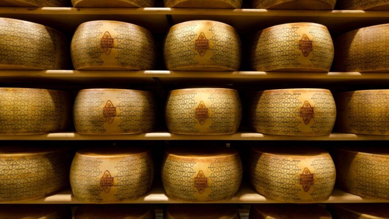 Per il Grana Padano, specifiche dettagliate regolano tutto, dall’alimentazione del bestiame (almeno il 75% del foraggio deve provenire dalla zona DOP) ai parametri tecnici chimici come il contenuto di umidità (59,0–63,5%) e l’indice di proteolisi (24,0–31,0%). Dopo nove mesi di stagionatura, i controllori della qualità utilizzano anche metodi tradizionali come battere con un martello e talvolta sondare con un ago d’acciaio per garantire che solo le forme che soddisfano standard rigorosi ricevano il caratteristico marchio a fuoco.