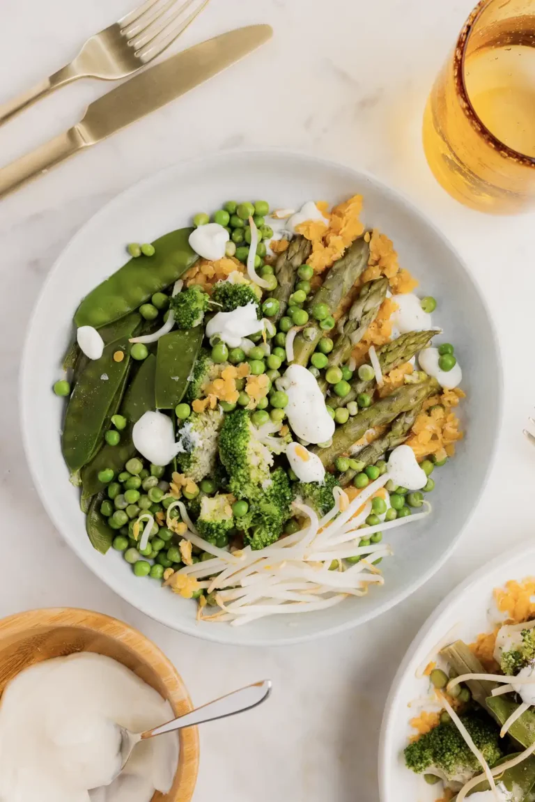 Puoi aggiungere frutti primaverili come fragole dolci e succose o fette di cremoso avocado per un tocco di dolcezza e consistenza ricca. Erbe fresche come basilico, prezzemolo e menta arricchiscono ulteriormente il sapore del piatto, donandogli un’irresistibile freschezza.