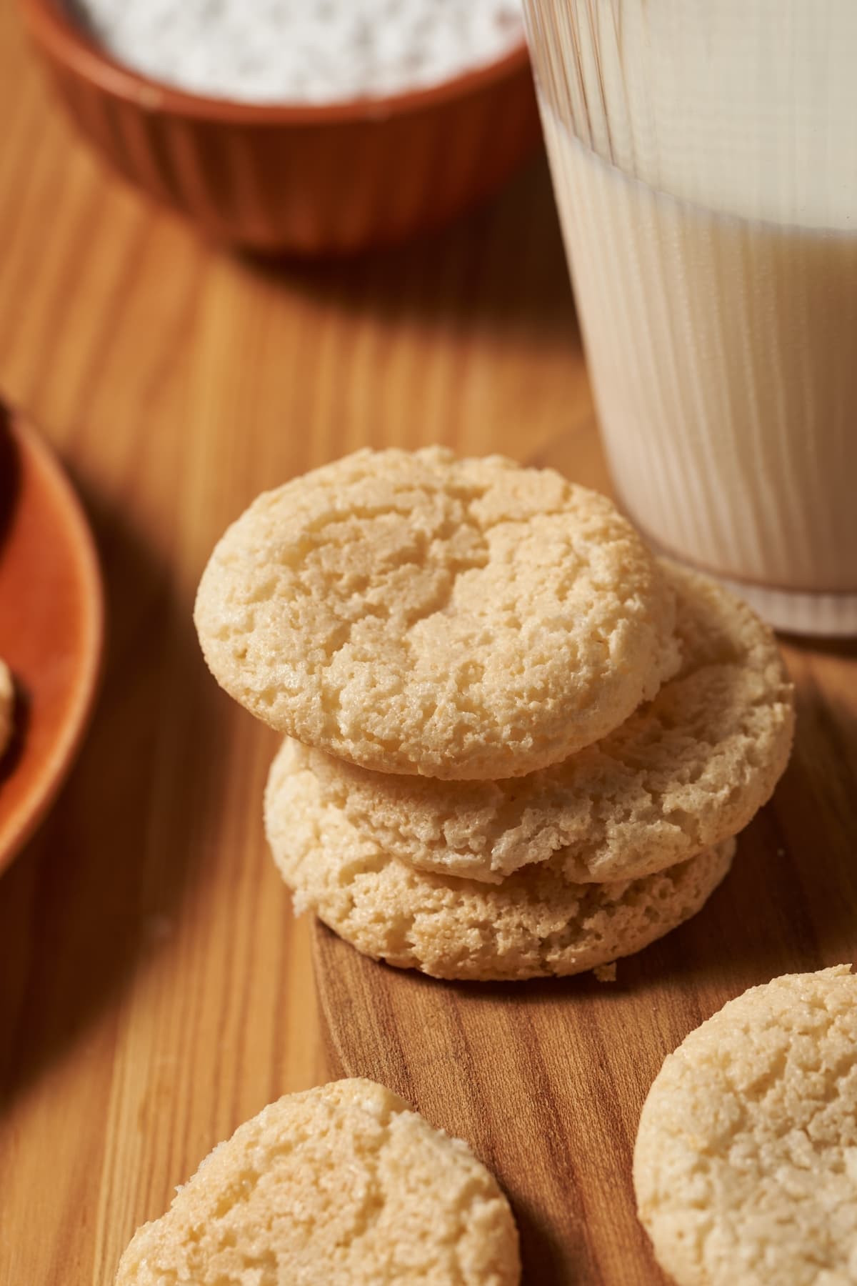 - Zucchero a velo (secondo necessità): ti servirà per spolverare o rivestire i tuoi biscotti. Quanto usarne dipende da te, se ti piace un aspetto molto bianco e un gusto zuccherino più intenso puoi rotolarli nello zucchero a velo prima di infornare e cospargerli sopra dopo che si sono raffreddati.