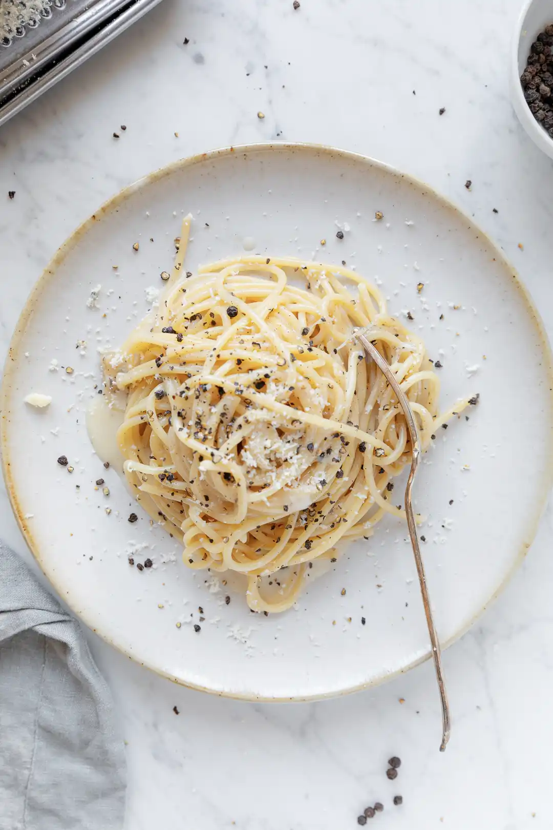 Mescolare lentamente la pasta per assicurarsi che sia ricoperta uniformemente dalla ricca salsa. Tradizionalmente realizzati con pecorino di media stagionatura, gli spaghetti Cacio e Pepe sono un piatto semplice ma irresistibile. Se il pecorino non è disponibile potete utilizzare in sostituzione il parmigiano reggiano. Potrebbe non essere la Cacio e Pepe più autentica, ma offrirà comunque un pasto delizioso!