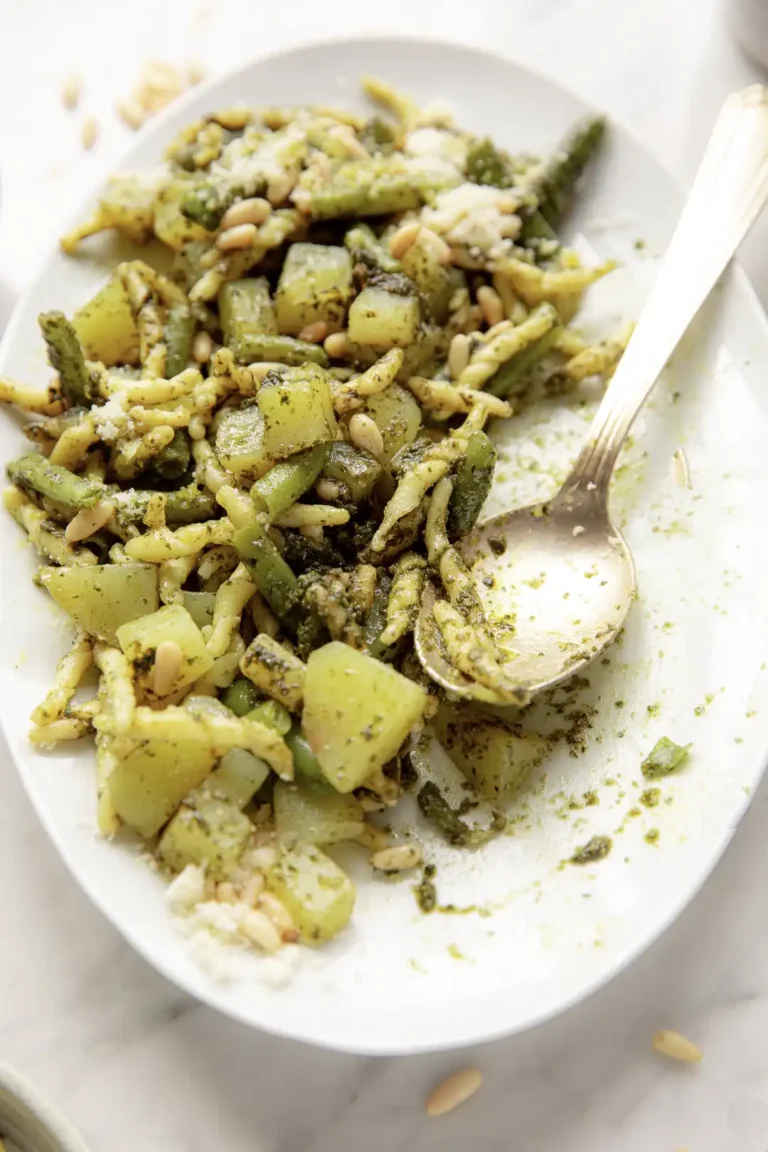 In Italia il pesto viene utilizzato per condire sia la pasta fresca che quella secca o gli gnocchi. Ufficialmente non è abbinato a nient’altro. Ufficiosamente può essere spalmata su crostini di pane conditi con olio e pomodoro a pezzi bruschettaun antipasto con crostini di pane e pomodoro fresco, oppure può anche condire panini con pomodoro e mozzarella. Si abbina bene anche con asparagi al vapore o uova sode o fritte.