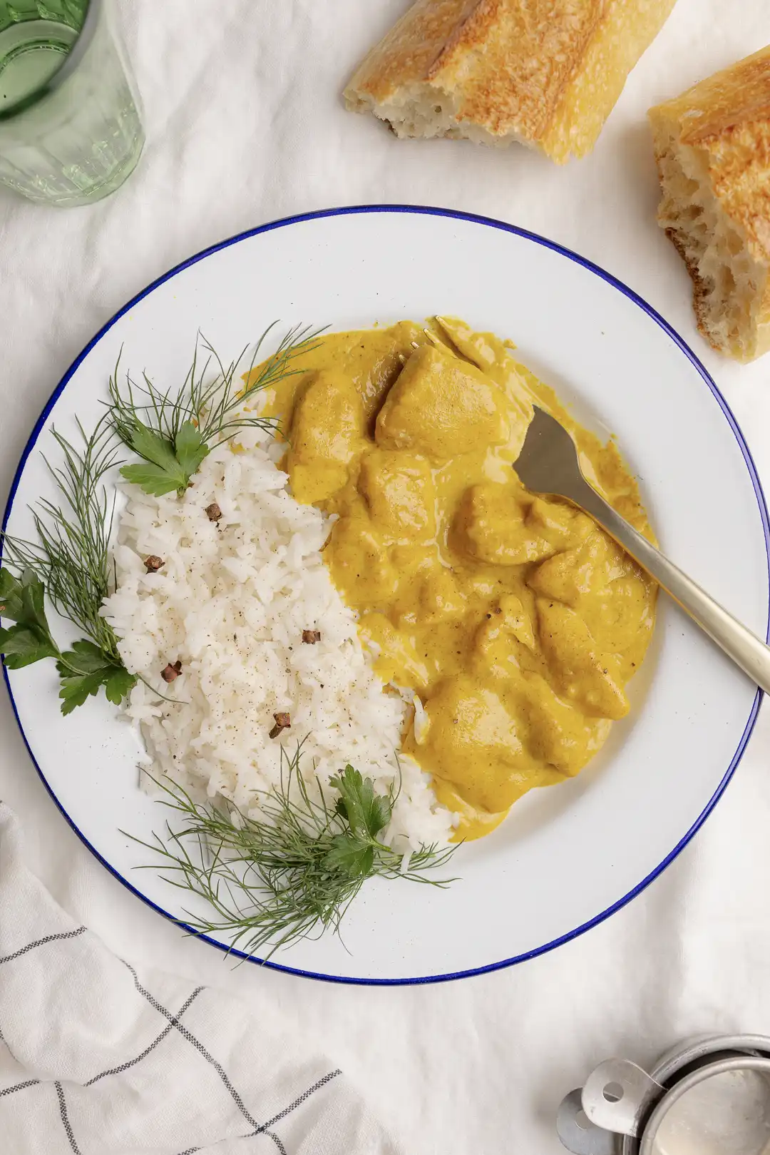 Il pollo al curry è pronto quando la salsa diventa cremosa.