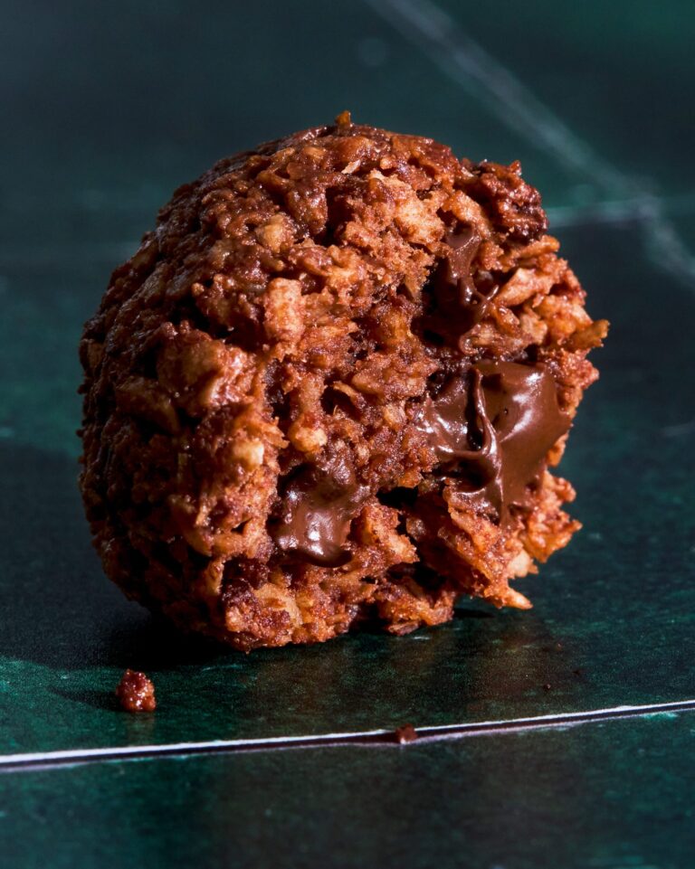 Usando un cucchiaio, porzionare e formare delle palline con il composto di cocco, quindi trasferirle sulle teglie preparate, distanziando 1 pollice l’una dall’altra. Cuocere, ruotando e scambiando le teglie a metà cottura, fino a quando gli amaretti saranno appena rappresi, circa 20 minuti. (Fare attenzione a non cuocere troppo perché i biscotti si rassoderanno mentre si raffreddano.) Trasferire su una gratella e mettere da parte a raffreddare completamente. Conservati in un contenitore ermetico, gli amaretti si conservano fino a 4 giorni.