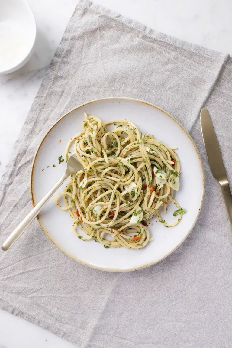 Ora hai degli spaghetti aglio olio e peperoncino perfetti nel tuo stile italiano!